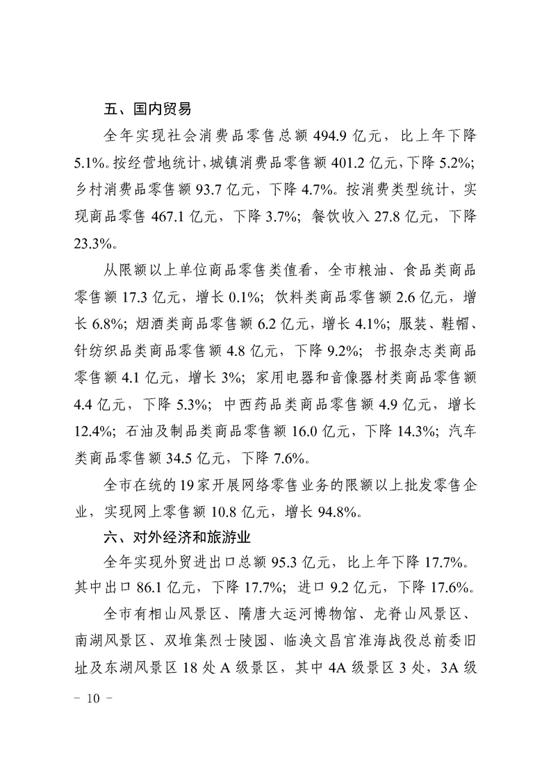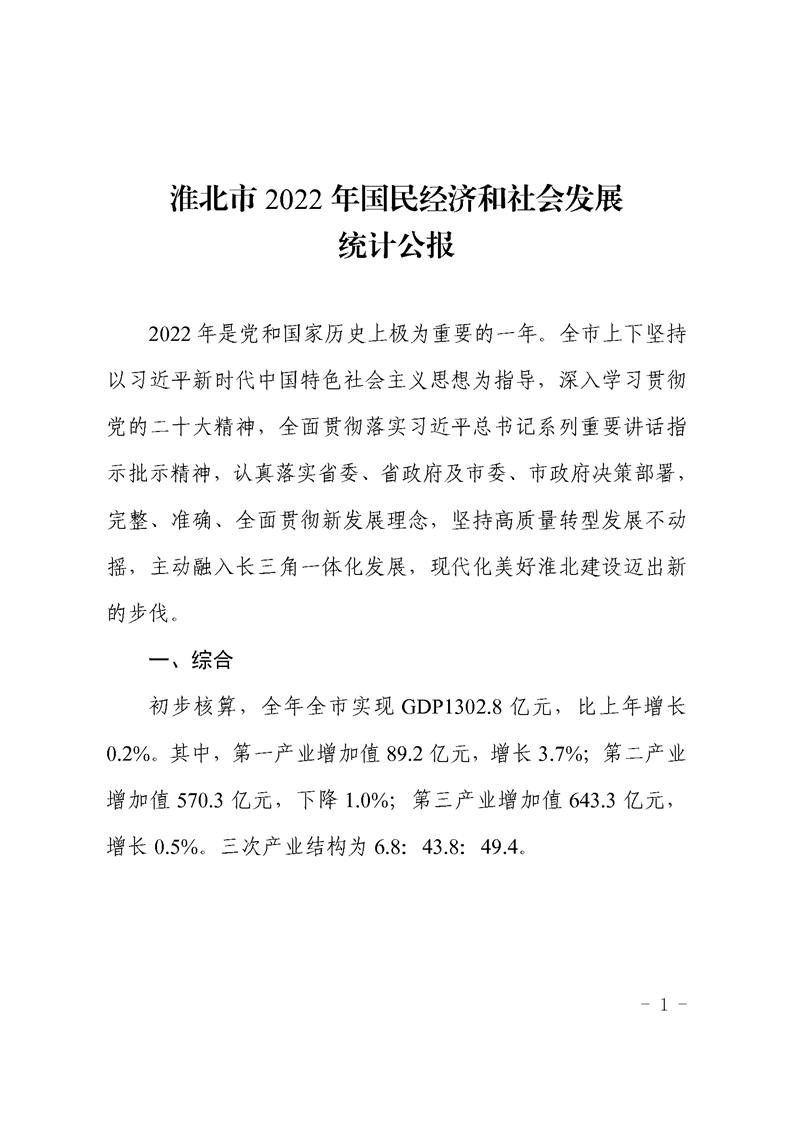 2022年安徽省淮北市人民政府國民經(jīng)濟和社會發(fā)展統(tǒng)計公報(2023年更新)