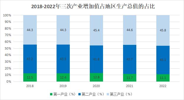 2022年,初步核算,全縣實現地區(qū)生產總值218.29億元,按可比價格計算,比上年增長5.0%。其中第一產業(yè)增加值24.29億元,增長4.4%;第二產業(yè)增加值為94.15億元,增長5.8%;第三產業(yè)增加值99.85億元,增長4.3%。三次產業(yè)結構為11.1:43.1:45.8。