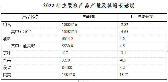 農(nóng)業(yè)生產(chǎn)穩(wěn)步發(fā)展。全年實(shí)現(xiàn)農(nóng)林牧漁業(yè)總產(chǎn)值380849萬元,比上年增長(zhǎng)3.81%。糧食總產(chǎn)量為108837.6噸,比上年減少3162噸。其中早稻產(chǎn)量12326噸;中稻產(chǎn)量78279.9噸;二晚產(chǎn)量12251.6噸。全年糧食種植面積297678.4畝,增長(zhǎng)0.87%;油料播種面積58115畝,增長(zhǎng)1.6%;蔬菜種植面積85857畝,增長(zhǎng)5.2%。