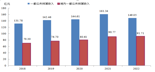 圖3:2018—2022年全市公共財(cái)政預(yù)算收入和地方財(cái)政收入