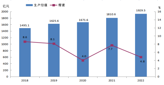 初步核算,全年實(shí)現(xiàn)地區(qū)生產(chǎn)總值1929.5億元,同比增長4.8%。其中:第一產(chǎn)業(yè)增加值219.97億元,增長3.9%;第二產(chǎn)業(yè)增加值757.39億元,增長5.1%,其中制造業(yè)增加值539.6億元,增長6.6%,制造業(yè)增加值占GDP的比重達(dá)到28%,比上年提升0.4個(gè)百分點(diǎn);第三產(chǎn)業(yè)增加值952.13億元,增長4.8%。