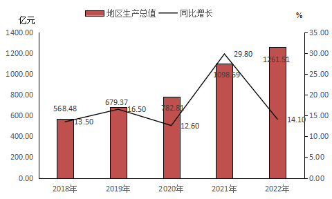 圖1 2018-2022年地區(qū)生產(chǎn)總值(GDP)及其增長速度