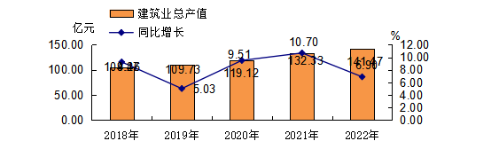 圖4 2018-2022年建筑業(yè)總產(chǎn)值及其增長速度