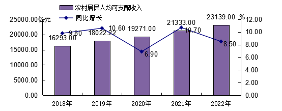 圖8 2018-2022年農(nóng)村居民人均可支配收入及其增長速度