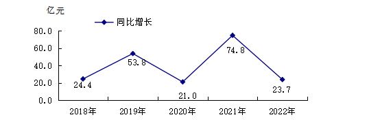 圖2 2018-2022年財政總收入(不含基金收入)及其增長速度