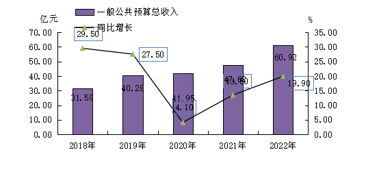 一般公共預(yù)算總收入60.92億元,同口徑增長19.9%;其中地方一般公共預(yù)算收入30.49億元,同口徑增長15.7%;公共財政支出46.03億元,同口徑增長10.4%。其中一般公共服務(wù)支出4.86億元,同口徑下降9.8%。
