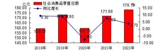 圖6 2018-2022年社會消費品零售總額及其增長速度