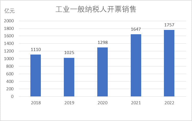 圖3 2018-2022年工業(yè)一般納稅人開(kāi)票銷(xiāo)售