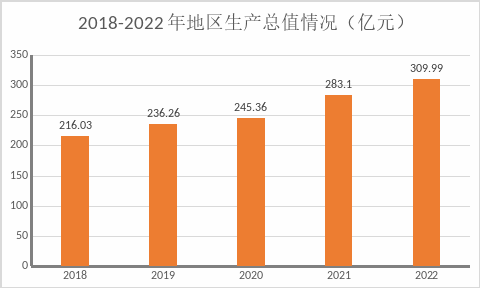 初步核算,全年地區(qū)生產(chǎn)總值(GDP)309.99億元,按可比價格計算,比上年增長5.6%。其中第一產(chǎn)業(yè)增加值17.74億元,增長4.4%,第二產(chǎn)業(yè)增加值211.58億元,增長6.0%,第三產(chǎn)業(yè)增加值80.68億元,增長6.8%。三次產(chǎn)業(yè)結(jié)構(gòu)比為5.7:68.2:26.1。初步測算人均GDP達14萬元。非公有制經(jīng)濟穩(wěn)步發(fā)展,實現(xiàn)增加值234.83億元,增長6.6%,占GDP比重為75.8%。