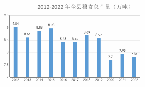 全年糧食總產(chǎn)量7.81萬噸,比上年下降1.8%。其中,早稻1.2萬噸,下降4.16%;二晚1.5萬噸,下降9.6%;一晚和中稻2.8萬噸,下降28.4%。全年油料產(chǎn)量2.4萬噸,較上年增長4.8%。棉花產(chǎn)量4274噸,較上年增長28.8%。蔬菜產(chǎn)量7.2萬噸,較上年下降2.0%。水果產(chǎn)量6041.5噸,較上年下降3.5%。