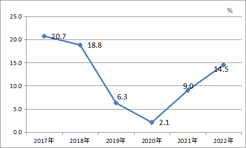 圖3 ?2017-2022年規(guī)模以上工業(yè)增加值增長(zhǎng)速度