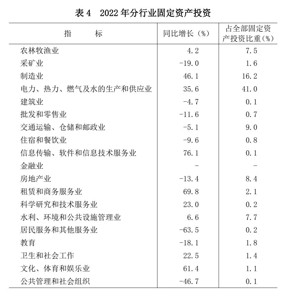 全年項(xiàng)目投資比上年增長(zhǎng)21.5%。其中,制造業(yè)投資增長(zhǎng)46.1%,電力、熱力、燃?xì)饧八a(chǎn)和供應(yīng)業(yè)投資增長(zhǎng)35.6%,交通運(yùn)輸、倉(cāng)儲(chǔ)和郵政業(yè)投資下降5.1%,水利、環(huán)境和公共設(shè)施管理業(yè)投資增長(zhǎng)6.6%。