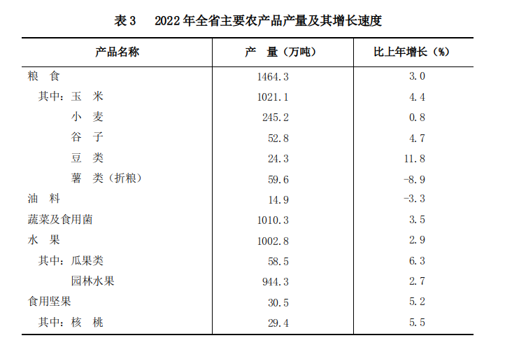 全年全省糧食產(chǎn)量1464.3萬噸,比上年增加43.0萬噸,增長3.0%。其中,夏糧245.2萬噸,增長0.8%;秋糧1219.0萬噸,增長3.5%。
