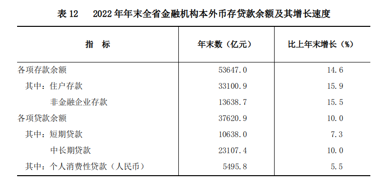 年末全省金融機構本外幣各項存款余額53647.0億元,比上年末增長14.6%,比年初增加6833.1億元。各項貸款余額37620.9億元,比上年末增長10.0%,比年初增加3406.0億元。