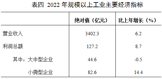 全年規(guī)模以上工業(yè)實現(xiàn)營業(yè)收入3402.3億元,比上年增長6.2%;實現(xiàn)利潤127.2億元,增長8.7%,其中:九大主要行業(yè)實現(xiàn)利潤110.2億元,占全部規(guī)模以上工業(yè)的86.7%。