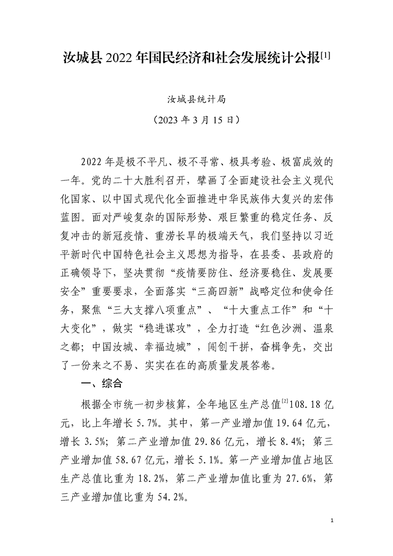 2022年郴州市汝城縣人民政府國民經(jīng)濟和社會發(fā)展統(tǒng)計公報(2023年更新)