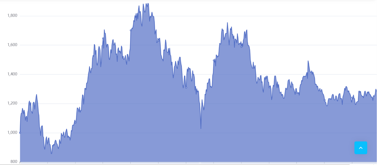 圖1-2021年1月-2023年7月儲(chǔ)能指數(shù)運(yùn)行情況