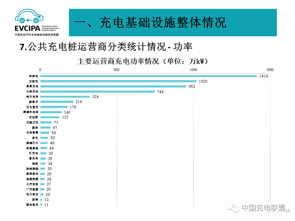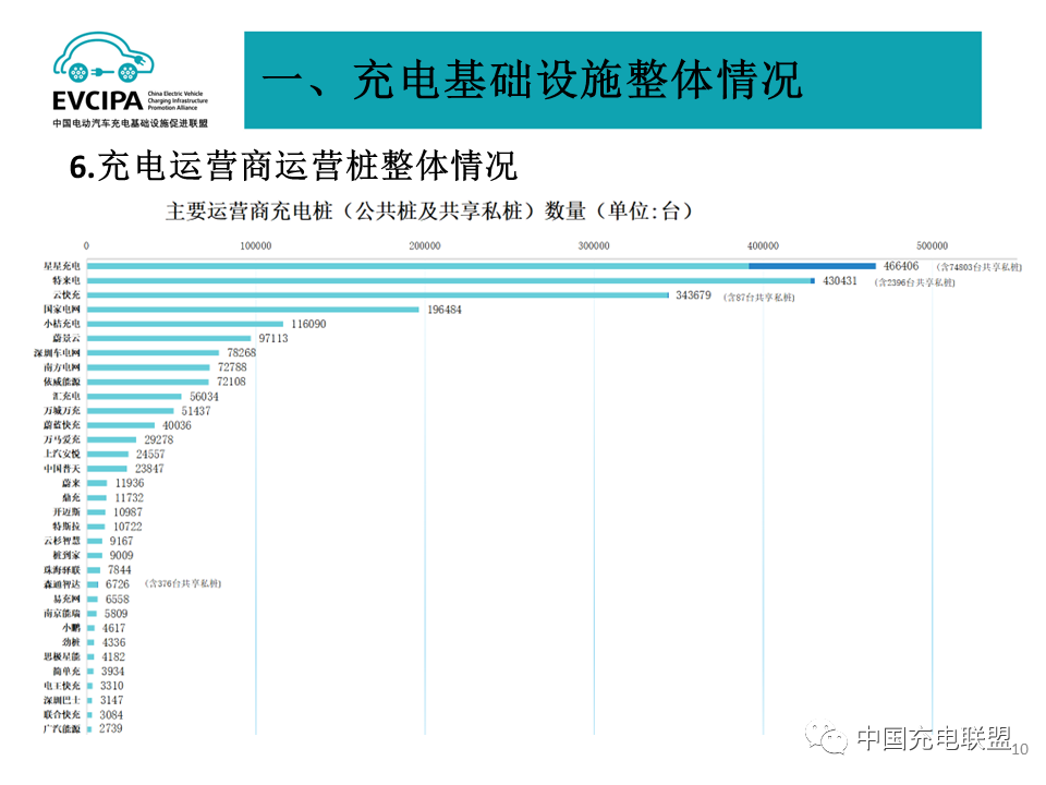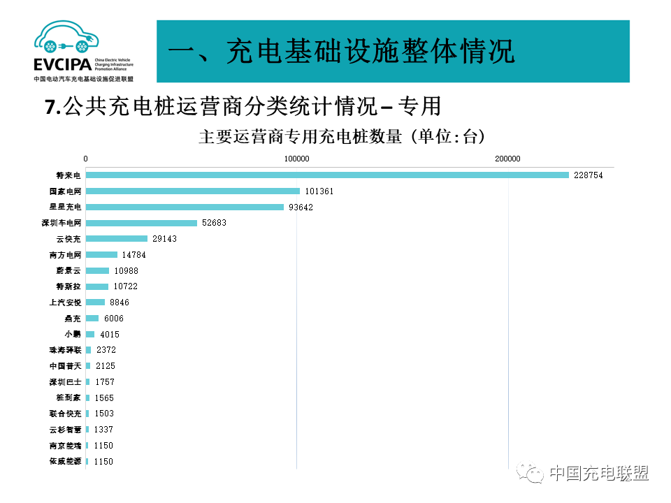 3 公共充電基礎設施運營商運行情況,截止到2023年6月,全國充電運營企業(yè)所運營充電樁數(shù)量TOP15,分別為:特來電運營42.8萬臺、星星充電運營39.2萬臺、云快充運營34.4萬臺、國家電網運營19.6萬臺、小桔充電運營11.6萬臺、蔚景云運營9.7萬臺、深圳車電網運營7.8萬臺、南方電網運營7.3萬臺、依威能源運營7.2萬臺、匯充電運營5.6萬臺、萬城萬充運營5.1萬臺、蔚藍快充運營4.0萬臺、萬馬愛充運營2.9萬臺、上汽安悅運營2.5萬臺、中國普天運營2.4萬臺。這15家運營商占總量的94.1%,其余的運營商占總量的5.9%。