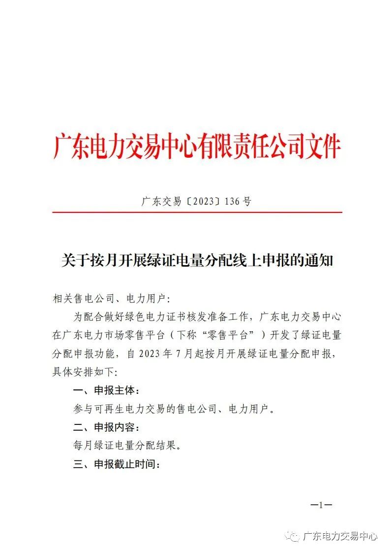 2023年|廣東按月開展綠證電量分配線上申報(bào)