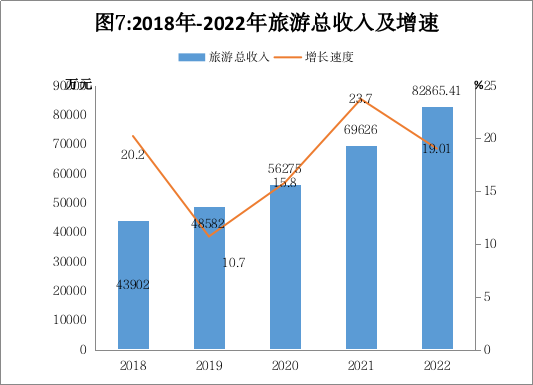 全年實(shí)現(xiàn)旅游總收入82865.41萬元,比上年增長(zhǎng)19.01%。