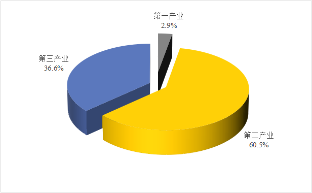 第一產(chǎn)業(yè)增加值占國內(nèi)生產(chǎn)總值比重為16.36%,同比下降4.8個百分點(diǎn);第二產(chǎn)業(yè)增加值比重為68.25%,同比增長13個百分點(diǎn);第三產(chǎn)業(yè)增加值比重為15.39%,同比下降8.2個百分點(diǎn)。