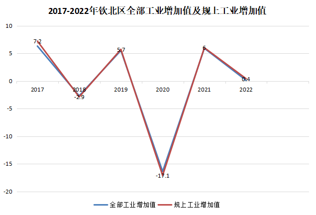 工業(yè)生產(chǎn):2022年,全區(qū)累計(jì)實(shí)現(xiàn)工業(yè)總產(chǎn)值增長3.6%,工業(yè)增加值增長0.1%。其中74家規(guī)模以上工業(yè)企業(yè)完成工業(yè)總產(chǎn)值增長3.8%,規(guī)模以上工業(yè)增加值增長0.4%;規(guī)上非公經(jīng)濟(jì)工業(yè)總產(chǎn)值增長-0.23%。2022年欽北區(qū)國民經(jīng)濟(jì)和社會發(fā)展統(tǒng)計(jì)公報
