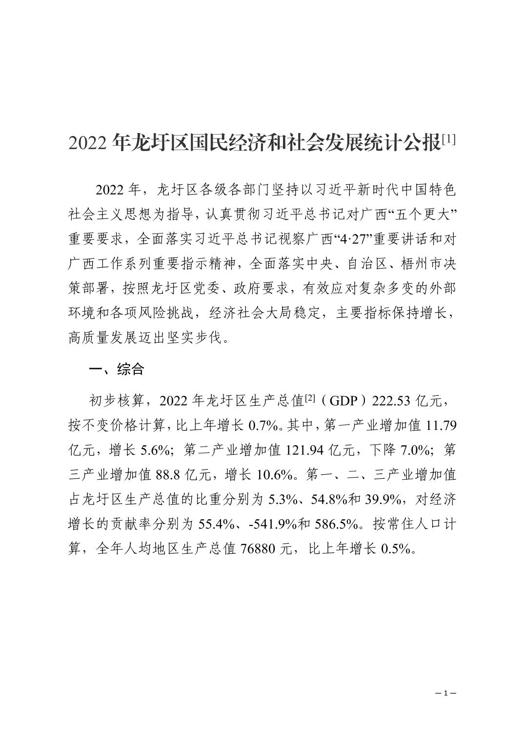 2022年梧州市龍圩區(qū)人民政府國(guó)民經(jīng)濟(jì)和社會(huì)發(fā)展統(tǒng)計(jì)公報(bào)(2024年更新)