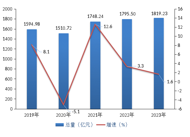 圖1 2019-2023年全市生產(chǎn)總值及其增速