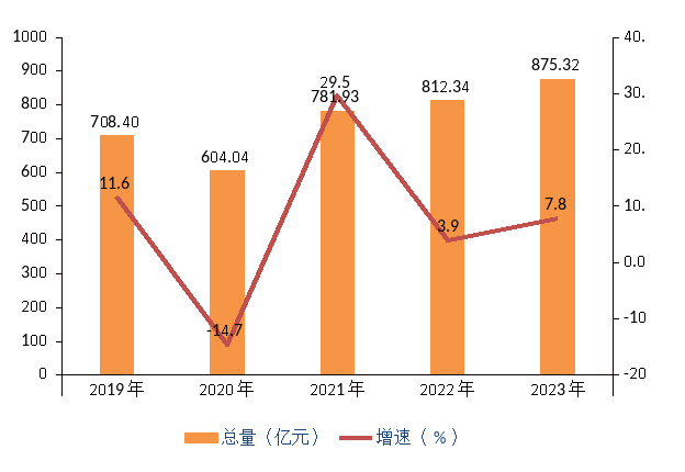 圖3 2019-2023年全市社會消費(fèi)品零售總額及其增速