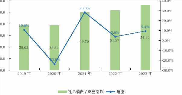 全年實現(xiàn)社會消費品零售總額56.40億元,同比增長9.4%。限額以上商貿(mào)企業(yè)實現(xiàn)消費品零售總額5.03億元,同比增長68.5%。從限上企業(yè)經(jīng)營所在地看,城鎮(zhèn)市場實現(xiàn)零售額4.31億元,同比增長62.7%;鄉(xiāng)村零售額0.72億元,同比增長114.6%。按限上企業(yè)消費形態(tài)分,餐飲收入實現(xiàn)零售總額0.29億元,同比增長34.6%;商品零售實現(xiàn)零售總額4.74億元,同比增長71.2%。