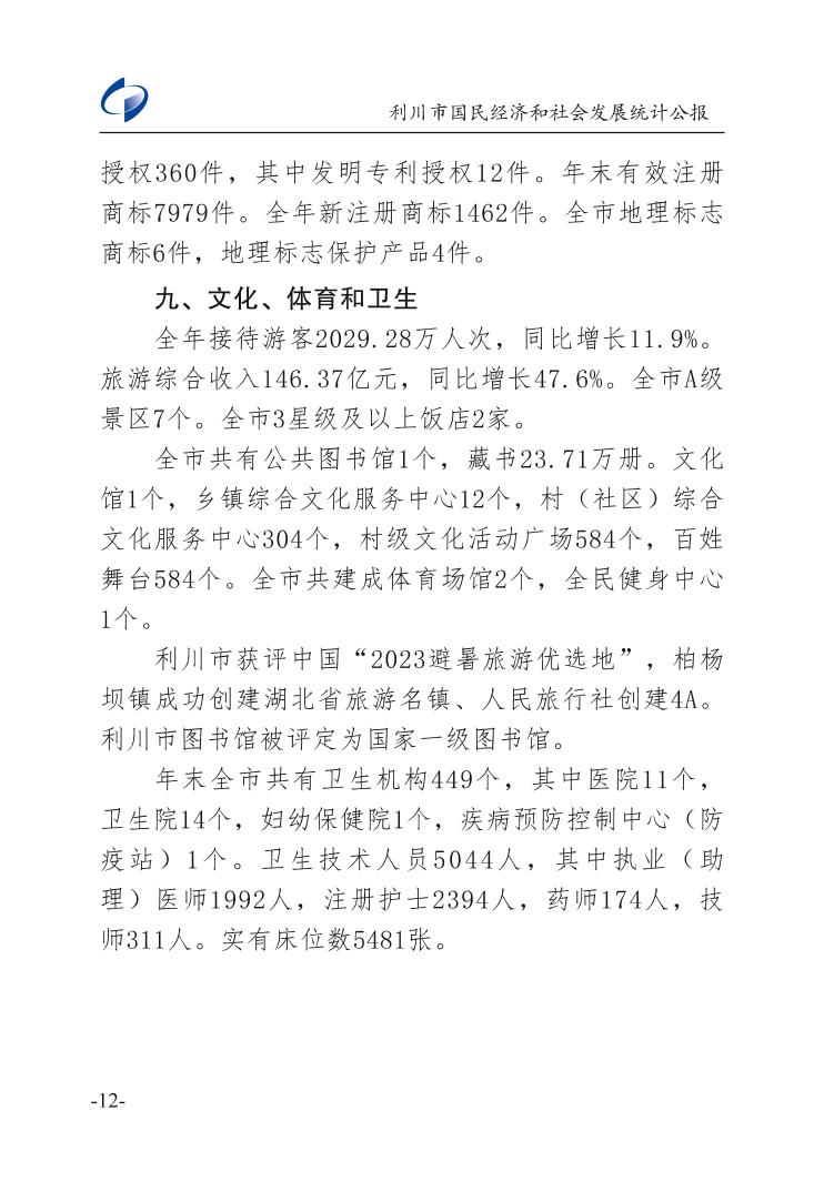 (湖北省)2023年恩施州利川市國(guó)民經(jīng)濟(jì)和社會(huì)發(fā)展統(tǒng)計(jì)公報(bào)