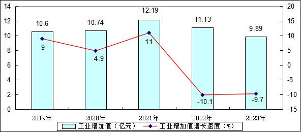 全縣工業(yè)增加值完成9.89億元,比上年下降9.7%;年末規(guī)模以上工業(yè)企業(yè)21戶,規(guī)模以上工業(yè)增加值同比下降24.1%。