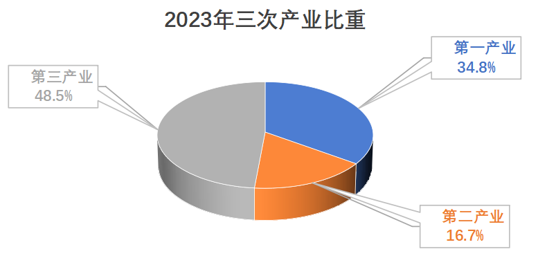全年實(shí)現(xiàn)地區(qū)生產(chǎn)總值110.6億元,比上年增長1%。其中,第一產(chǎn)業(yè)實(shí)現(xiàn)增加值38.5億元,比上年下降1.2%;第二產(chǎn)業(yè)實(shí)現(xiàn)增加值18.5億元,比上年增長2.1%;第三產(chǎn)業(yè)實(shí)現(xiàn)增加值53.6億元,比上年增長2.4%。三次產(chǎn)業(yè)結(jié)構(gòu)由上年的36.6:15.5:47.9調(diào)整為34.8:16.7:48.5。