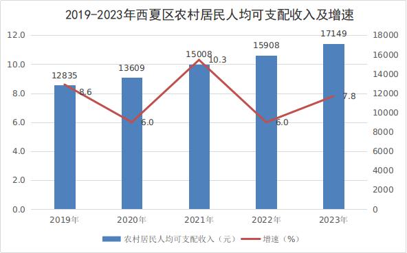 2023年,西夏區(qū)城鎮(zhèn)居民人均可支配收入38708元,比上年增加2362元,增長6.5%;農(nóng)村居民人均可支配收入17149元,比上年增加1241元,增長7.8%。