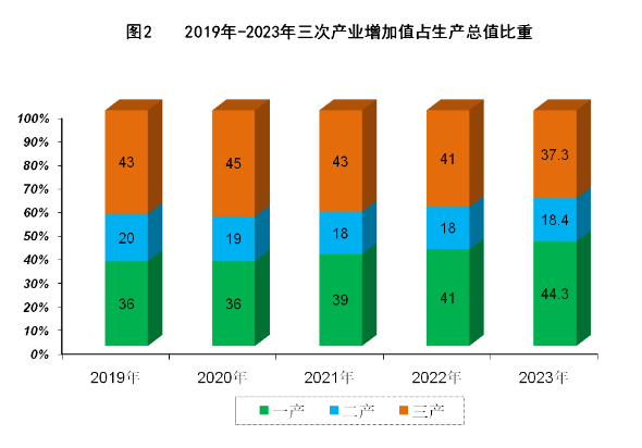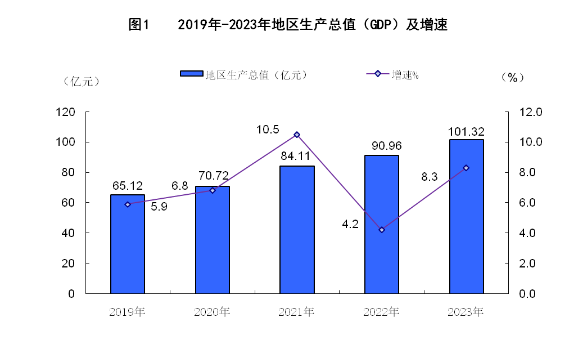 根據(jù)地區(qū)統(tǒng)一核算,伽師縣2023年實現(xiàn)地區(qū)生產(chǎn)總值(GDP)101.32億元,比上年增長8.3%。其中,第一產(chǎn)業(yè)增加值44.85億元,增長8.6%;第二產(chǎn)業(yè)增加值18.66億元,增長16.9%;第三產(chǎn)業(yè)增加值37.82億元,增長4.7%。