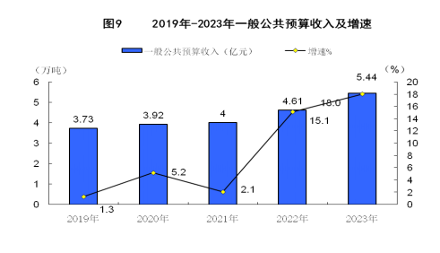 全年地方財政收入8.84億元,比上年增長24.4%。其中:一般公共預算收入5.44億元,比上年增長18.0%。各項稅收收入2.02億元,比上年增長45.5%。全年地方財政支出84.13億元,增長24.4%。