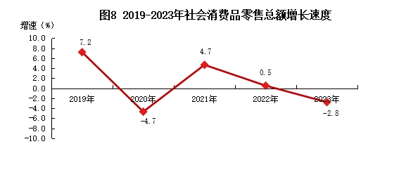2023年,江南區(qū)本級(jí)社會(huì)消費(fèi)品零售總額232.58億元,比上年下降2.8%。按經(jīng)營單位所在地統(tǒng)計(jì),城鎮(zhèn)消費(fèi)品零售額216.58億元,比上年下降2.8%;鄉(xiāng)村消費(fèi)品零售額16億元,比上年下降2%。按消費(fèi)形態(tài)統(tǒng)計(jì),商品零售額217.78億元,比上年下降3.5%;餐飲收入14.79億元,比上年增長10.4%。