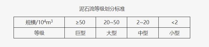 泥石流按照規(guī)??煞譃榫扌汀⒋笮?、中型、小型4個等級。其劃分標準見表。
