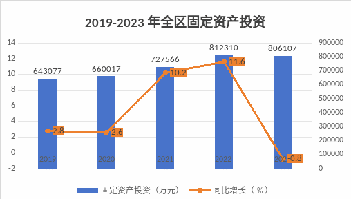 全年全區(qū)固定資產(chǎn)投資(不含農(nóng)戶)80.61億元,比上年下降0.8%。分領(lǐng)域看,基礎(chǔ)設(shè)施投資增長(zhǎng)78.2%,采礦業(yè)投資增長(zhǎng)102%,制造業(yè)投資增長(zhǎng)21.5%,房地產(chǎn)開發(fā)投資下降40.6%。分產(chǎn)業(yè)看,第一產(chǎn)業(yè)投資下降25.4%;第二產(chǎn)業(yè)投資下降7.7%;第三產(chǎn)業(yè)投資增長(zhǎng)76.3%。三次產(chǎn)業(yè)投資占比分別為6.7%、78.5%、14.8%。
