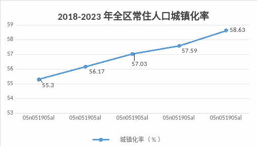 城鄉(xiāng)融合和區(qū)域協(xié)調(diào)發(fā)展步伐穩(wěn)健。年末全區(qū)常住人口城鎮(zhèn)化率為58.63%,比上年末提高1.04個(gè)百分點(diǎn)。