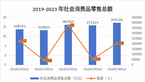 全年社會(huì)消費(fèi)品零售總額39.97億元,比上年增長(zhǎng)6.5%。按經(jīng)營(yíng)單位所在地分,城鎮(zhèn)消費(fèi)品零售額24.96億元,增長(zhǎng)5.8%;鄉(xiāng)村消費(fèi)品零售額15.01億元,增長(zhǎng)7.6%。按消費(fèi)類型分,商品零售22.08億元,增長(zhǎng)9.2%;餐飲收入17.89億元,增長(zhǎng)3.3%。