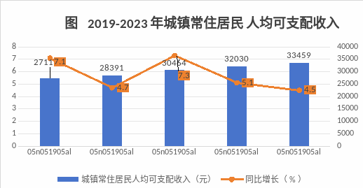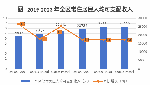 全年全區(qū)居民人均可支配收入25115元,同比增長(zhǎng)5.8%。按常住地分,城鎮(zhèn)居民人均可支配收入33459元,同比增長(zhǎng)4.5%;農(nóng)村居民人均可支配收入15544元,同比增長(zhǎng)8%,城鄉(xiāng)居民收入比2.15,比去年縮小了0.08個(gè)百分點(diǎn)。