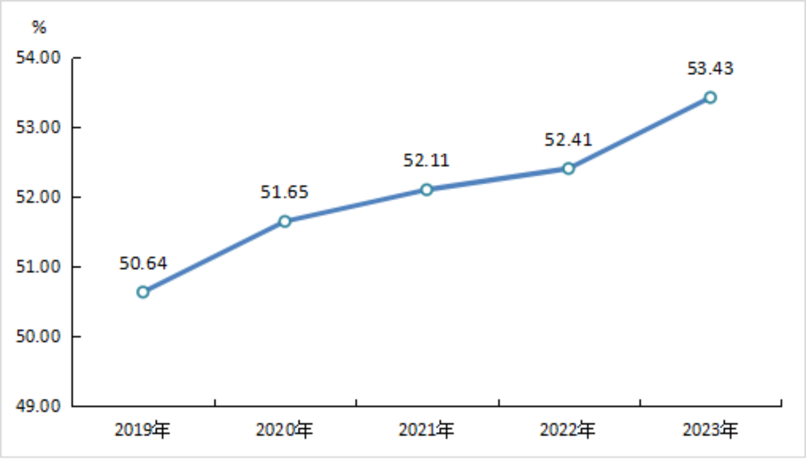圖7??2019-2023年年末八步區(qū)常住人口城鎮(zhèn)化率