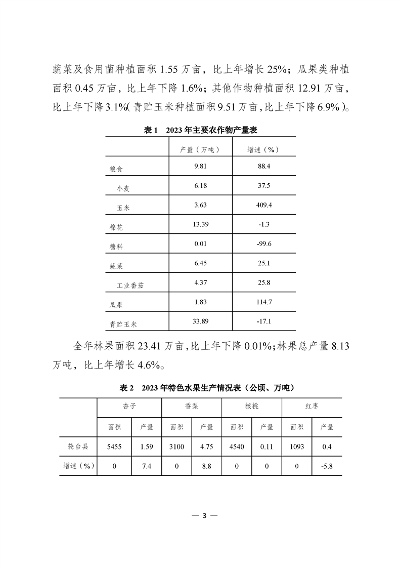 (新疆)2023年巴音郭楞蒙古自治州輪臺(tái)縣國(guó)民經(jīng)濟(jì)和社會(huì)發(fā)展統(tǒng)計(jì)公報(bào)