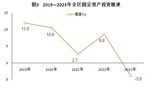 全年固定資產(chǎn)投資同比下降3.8%。其中,民間投資下降3.3%,工業(yè)投資下降19.8%,工業(yè)技改投資下降11.3%。