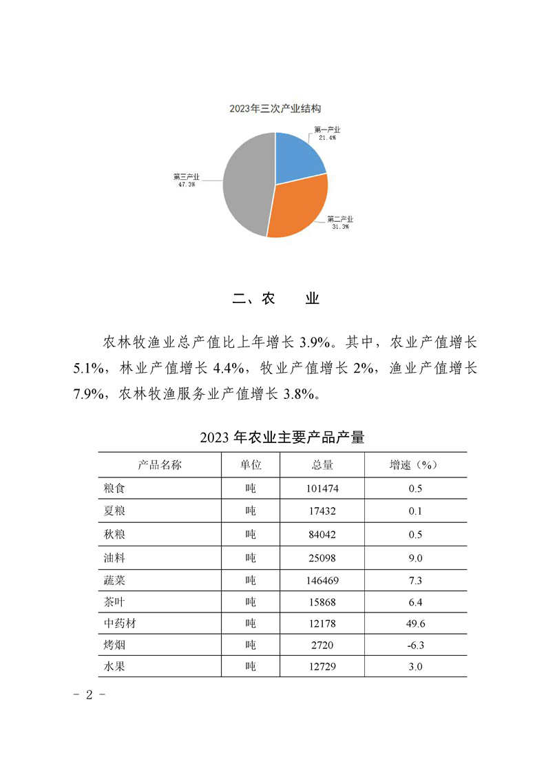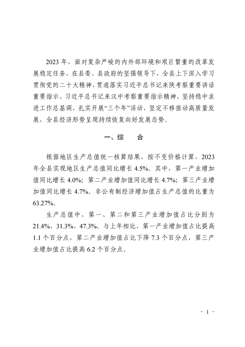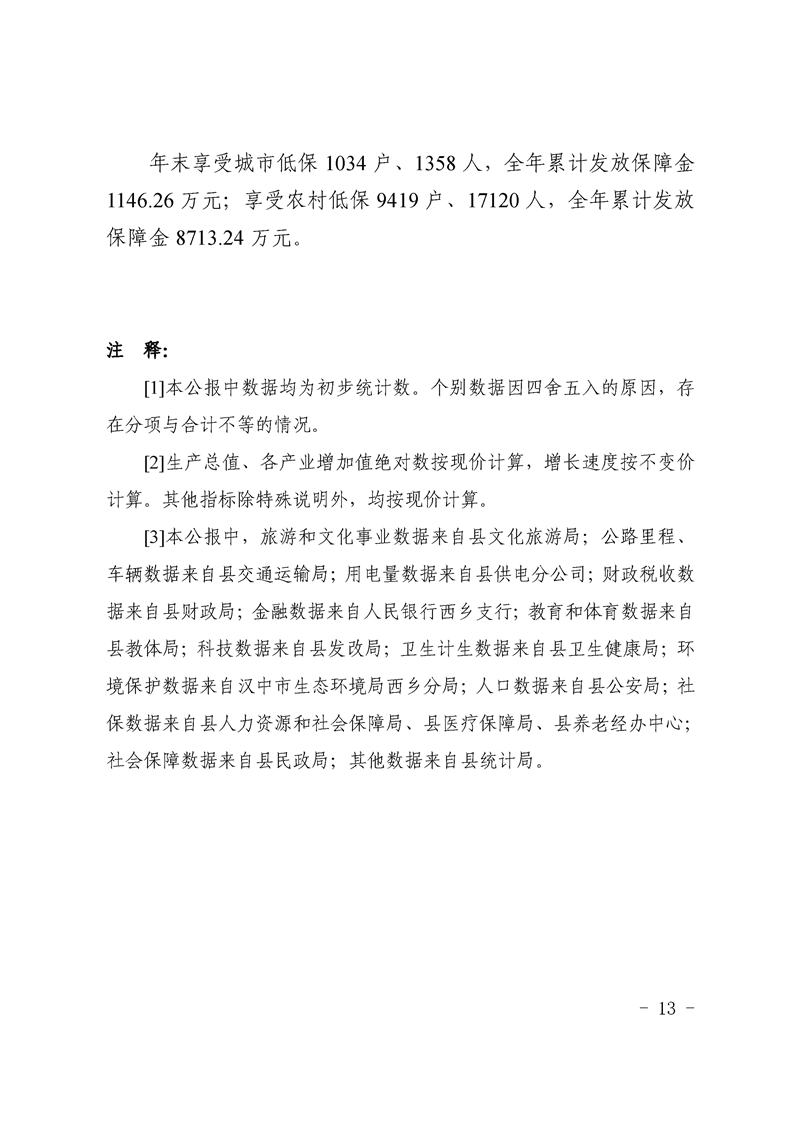 (陜西?。?023年漢中市西鄉(xiāng)縣國民經濟和社會發(fā)展統(tǒng)計公報