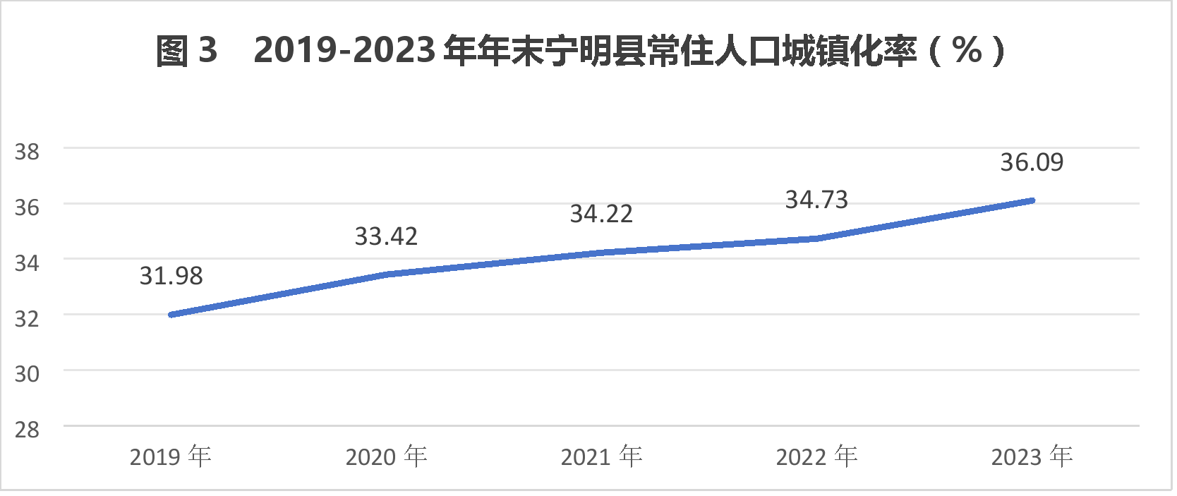 年末全縣常住人口[3]31.31萬人,比上年末下降0.48萬人,其中城鎮(zhèn)人口11.30萬人,占常住人口比重(常住人口城鎮(zhèn)化率)為36.09%,比上年末提高1.36個百分點。全年人口出生數(shù)2595人,出生率為5.87‰;死亡人口3165人,死亡率為7.17‰;自然增長率為-1.29‰。