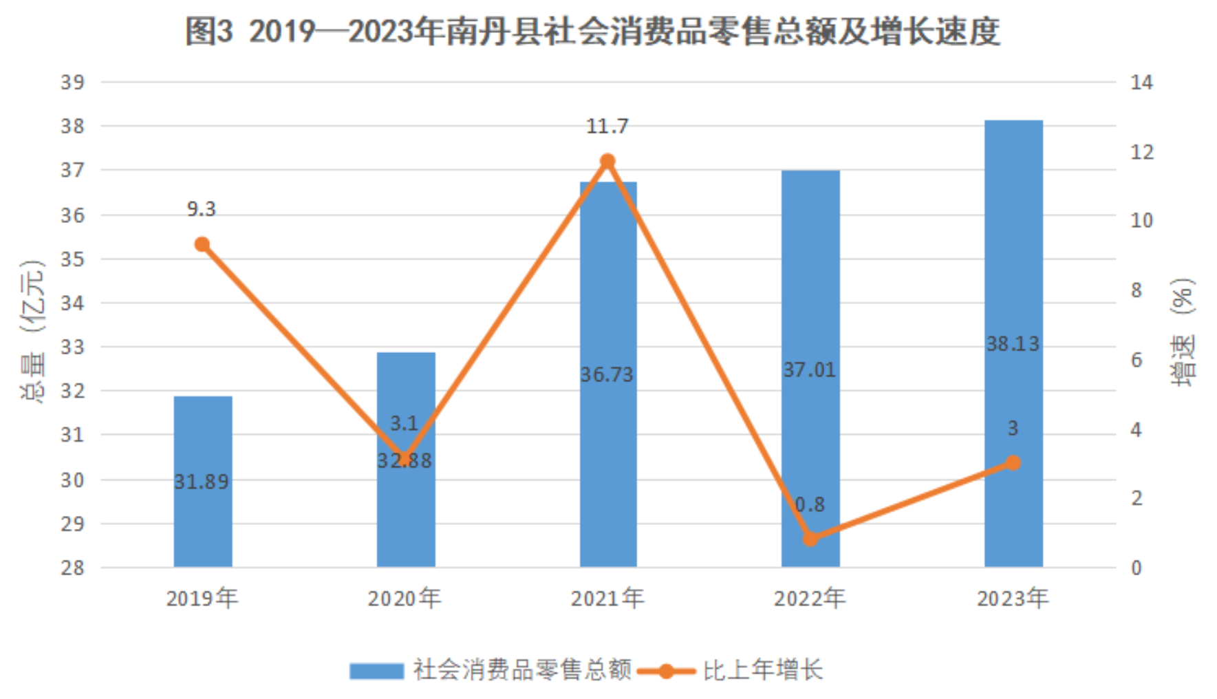 全年全縣社會(huì)消費(fèi)品零售總額[3]381337萬(wàn)元,比上年增長(zhǎng)3.0%。按經(jīng)營(yíng)地統(tǒng)計(jì),城鎮(zhèn)消費(fèi)品零售總額329518萬(wàn)元,增長(zhǎng)2.6%;鄉(xiāng)村消費(fèi)品零售總額51819萬(wàn)元,增長(zhǎng)5.9%。按消費(fèi)類型統(tǒng)計(jì),商品零售額336166萬(wàn)元,增長(zhǎng)0.8%;餐飲收入額45171萬(wàn)元,增長(zhǎng)23.4%。