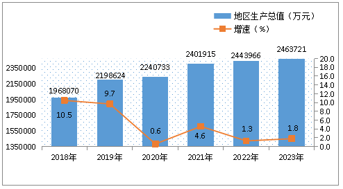圖1 ?2018年—2023年地區(qū)生產(chǎn)總值及增長速度