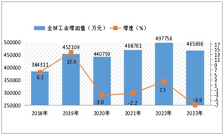 圖7 ? 2018年—2023年全部工業(yè)增加值及增長速度